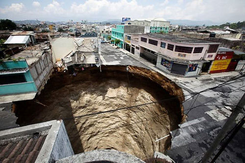 2007年,危地马拉城也曾出现过一个类似天坑,而且距离最近出现的那个天坑还不远。根据照片判断,这两个天坑的直径约为60英尺(约合18米),深约300英尺(约合100米)。通常情况下,当局会用大块石头和其他碎片将天坑填满。随着时间推移,在水的侵蚀和空气的烘燥作用下,还会引起天坑向内倾斜。