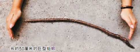 </p></p>巨型蚯蚓</p>南美森林中存在着一种巨大的蚓螈(caecilian)亚种。这种生物在恐龙时代就有了。大多数发现这种生物的报告都在巴西。生活在南美洲的巨型蚯蚓,最长的可达2米多。</p>普通蚯蚓</p>体长约60mm~120mm,体重约0.7~4克。比较常见,被称为“钓鱼虫”。</p>俗语说,曲鳝(蚯蚓)可拉到黄鳝长。现在,位于綦江县、巴南区和江津区交界处,属綦江县新盛镇的薄刀岭水库大坝附近,巨型蚯蚓被钓鱼人偶然发现。不需被人用手拉,它也比农贸市场卖的黄鳝长两三倍,粗细超过成人拇指。</p>钓鱼人寻蚯蚓作钓饵,以为遇到蛇了</p>薄刀岭水库属饮用水源,周边树高林密,受落叶深度可没脚的影响,大坝至水库管理站一带土壤异常肥沃。</p>上周,众多钓鱼人来这里垂钓。期间,有人寻蚯蚓作钓饵,搬动水库边灌木丛边石块。</p>“那人好像姓刘,40岁左右。听到他惊叫,我以为他遇到了蛇。”昨日,钓鱼人古先进告诉记者,他闻声跑过去,准备抱石块砸蛇,却被惊得目瞪口呆:一条比鳝鱼还粗、略带暗红色的蚯蚓蜷缩在石块下;蚯蚓受惊,逐渐变细后爬动的体长有八九十厘米,并很快消失在草丛中。他们七嘴八舌认为,可能像恐怖片中的史前巨鳄一样,它来自远古。</p>由此,这条蚯蚓被古先进等人命名为“史前巨蚯蚓”。现在,这条蚯蚓被发现时的场景,被网友发在“綦江在线”论坛上,引来啧啧称奇者不断。</p>38年前石匠以巨蚯蚓作图腾</p>水库管理员叫幸贤方,今年58岁,管理水库已23年。目前,在水库管理站砖柱下方的青石垫墩上,仍刻着一条鸡蛋粗细、缠绕昂头的蚯蚓。老幸讲,水库海拔近700米,属高山水库。1973年,大坝建成蓄水。</p>按他说法,有个李石匠在目前水库管理站附近山坡刨土取石时,在泥土中发现一只巨蚯蚓。大坝蓄水不久,李石匠刻石垫墩垫支撑管理站砖柱,在其中一块石垫墩上,他特意刻上那条巨形蚯蚓———他认为这样能避免大坝出意外。</p>23年来,老幸每年都会发现巨蚯蚓。末了,他带记者到管理站厨房。他讲,凡暴雨前或暴雨后,水缸都会出现一两条顺壁滚进缸的巨蚯蚓。</p>现在,水缸旁堆柴禾的地方变得很异常:隔三差五,地面出现拳头大的土堆———巨蚯蚓拉的粪便。</p>放羊人说看到超1米的巨蚯蚓</p>水库边唯一那家农户证实,在当地,锄地常跟巨蚯蚓打照面,它吓人却不伤人。</p>60岁的羊倌梅国秋佐证了这种说法。他讲,他经常在林间小道见到巨蚯蚓,并比划它们中个体最长者爬动时逐渐拉长的身体可超过1米。</p>“它们特别喜欢在路上滚泥沙,可能这样很凉快。”梅国秋说,他放羊带一根赶羊棍,见巨蚯蚓就挑起放草丛,羊会围过来看稀奇,还“咩咩”地叫。这时,梅国秋很快乐:山里放着,他常半天找不到人说话,看巨蚯蚓爬行是一大乐趣。它为啥长恁大?他和老幸等当地人都说不清楚,唯记得巨蚯蚓爬动时体长会增加约1倍。</p>