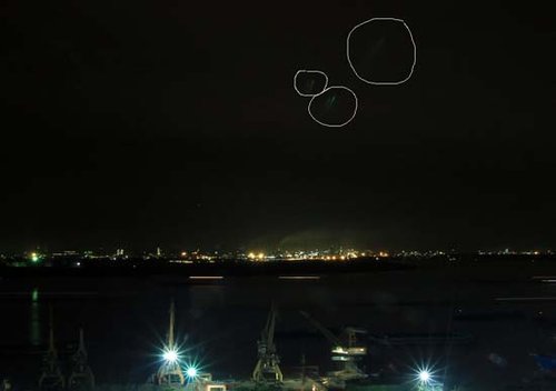 </p>不明发光物位置已经用圈标注出来</p>。
