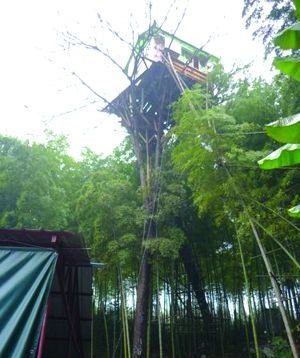 </p></p>网络上又一个牛人诞生了,他就是湖南农民熊玉虎。32年前,他亲手种下一棵树,32年后的今天,他在这棵树上搭建了一间梦中小屋。对蜗居在城市水泥森林中的人们来说,这怎能令人不羡慕?</p>12月14日,网友“赤脚记者”发帖,介绍了自己在湖南省益阳市桃江县发现的一位牛人。帖子的主角名叫熊玉虎,60岁,地道的农民。他自己设计、自己动手,在一棵树上搭建了一座小木屋,储水箱、卧室、厨房和厕所一应俱全。看过帖子,网友“音乐的节奏”说:“这是在哪里,怎么会有这样的艺术,支持!” 住在离地28.5米的树杈之间,鸟儿欢鸣声伴随耳边,这间树上小屋惹来许多网友羡慕:“坐看风云起,不错不错。”也有网友猜测,屋主一定是喜欢创新的人。 </p>昨日下午,几经努力,本报记者联系到了网帖中的主角熊玉虎。“北京有个鸟巢,我想建一个真正的鸟巢。”电话中,熊玉虎操一口浓重的湖南口音。他说,这个小屋是从今年4月份开始建的,从设计、选料到动手搭建,都是他一个人一点一点完成,预计到春节前就能完工。</p>小屋坐落在距地面28.5米高的树杈之间,这棵铁枣树就在熊玉虎家旁边,也是他32年前亲手种下的。今年4月开始,他每天从梯子爬上去查看树上的状况,然后根据图纸进行设计,再搬运木料、进行施工。屋子长4.1米、宽4米,全木结构,床、被子、电视甚至连电脑都有。老熊说,目前电线、水管都已经配备到位了,过段时间他准备再接根网线,争取早日连上互联网。厕所在屋外,垂下一根管子直接连到熊玉虎家的沼气池中。之所以整个过程之中没有人帮他,不是没人愿意帮,而是看着那么高的树,没有人敢帮他。</p>现在,小屋还差一个多月就完工了,熊玉虎还试着在上面住了几天,据他说还挺暖和:“住在树上空气好,我觉得这就很环保嘛。”</p>自从熊玉虎的“鸟巢”在网上曝光后,别说乡亲四邻了,就连益阳、长沙等地的网友也都赶来参观。要忙于接待这么多的参观者,可把老熊忙坏了,他现在还想加紧施工,明年顺利住进自己的“梦中鸟巢”。</p>