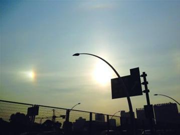 昨天早晨,高空薄薄的云层中排布着许多细小六角形的冰晶,在太阳光的折射下,申城上空出现日晕、幻日和幻日弧光现象。日晕,即太阳周围出现一圈光晕;幻日,即出现多个“太阳”,多出来的“太阳”其实是太阳的幻影。