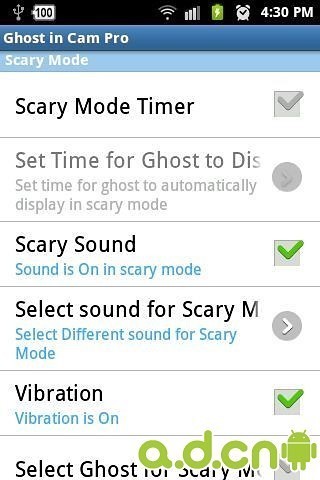 《幽灵相机 专业版 Ghost in Cam Pro》是一款非常有趣的Android摄像头增强软件,它最大的特色就是能够让你拍摄出一些诡异的照片,比如在正常的照片上有一个朦胧的鬼魂的样子.功能:自动模式:拍摄时自动选择一张鬼魂的照片.手动模式:可以自行设计自己的鬼魂图片,并且可以上下颠,还可以设置半透明度,进行旋转和拖放到任意位置.拍摄的时候隐藏鬼魂图片和设置按钮.启用声音效果:能够模拟尖叫声,更添恐怖氛围.注:软件属于娱乐之用,不可用于恐吓他人
